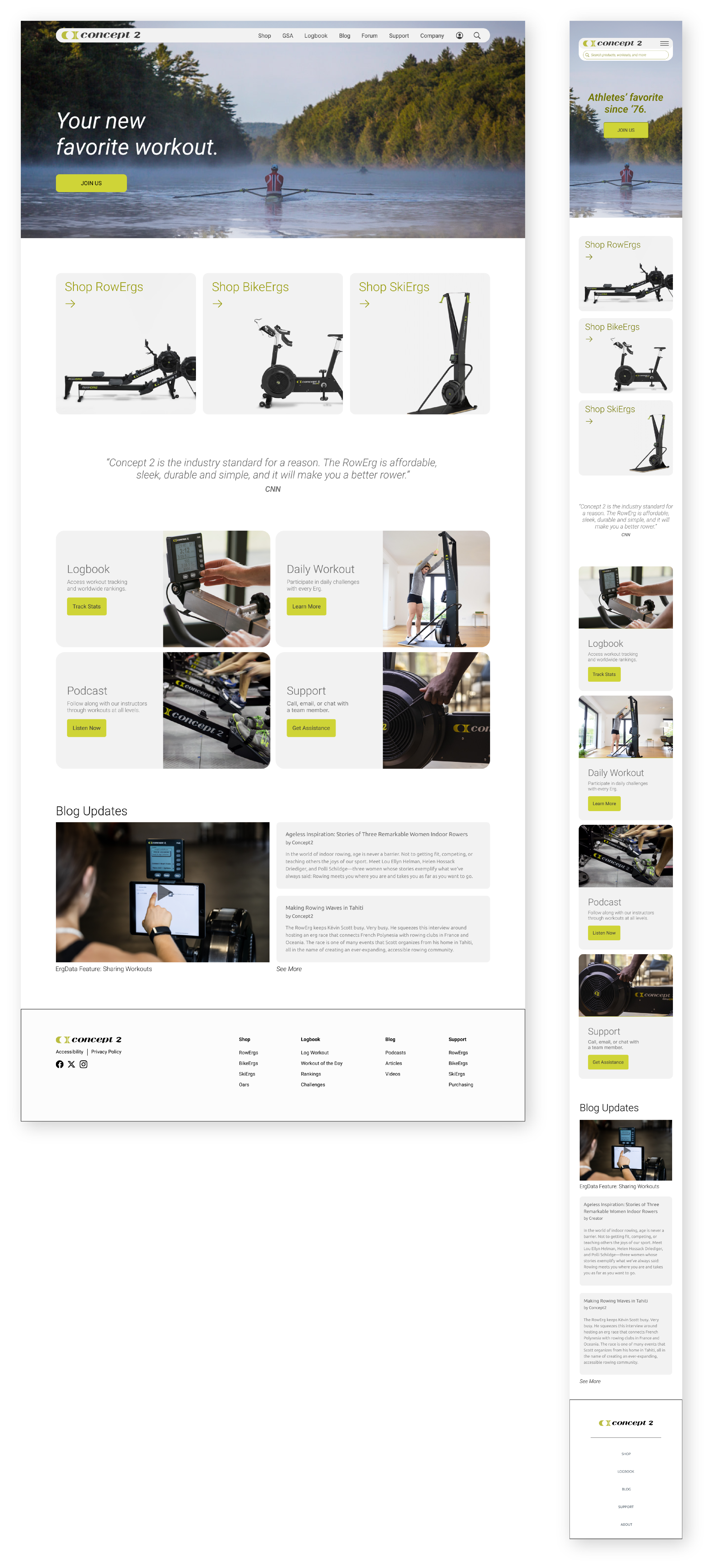 Concept2 has the opportunity to create a streamlined, personal journey for site users in order to reiterate or establish trust and familiarity.